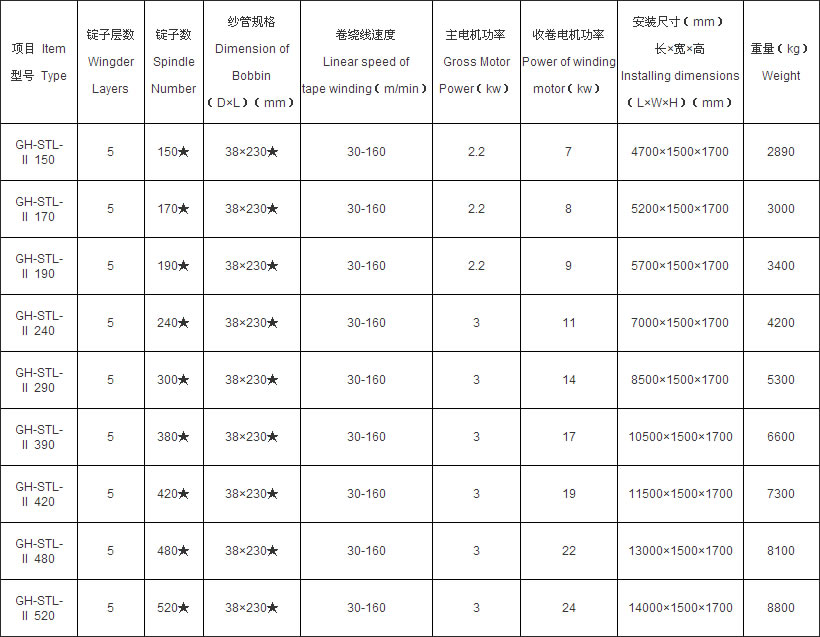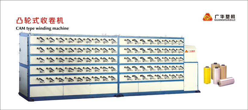 本机系公司研制成功的专利产品——节能型收卷机,主电机仅2.2-3千瓦,采用心形凸轮代替原组合式收卷机的往复丝杆机构,导向轴采用GCr15轴承钢制作,导向推板用直线滚动轴承与导向轴配合,使往复运动全部采用滚动摩擦,机件磨损少,运动轻松平稳.收卷丝锭平整。采用五层两面收卷,整机长度缩短,有利于配套大型拉丝机使用。